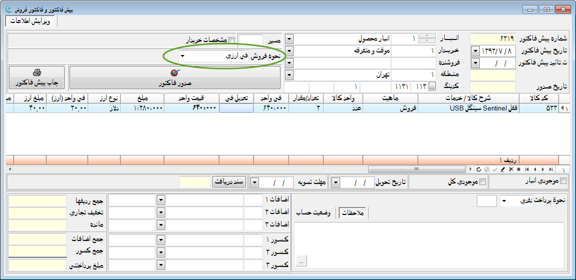 فروش - کاربرد فی ارزی کالا در صدور فاکتورهای فروش